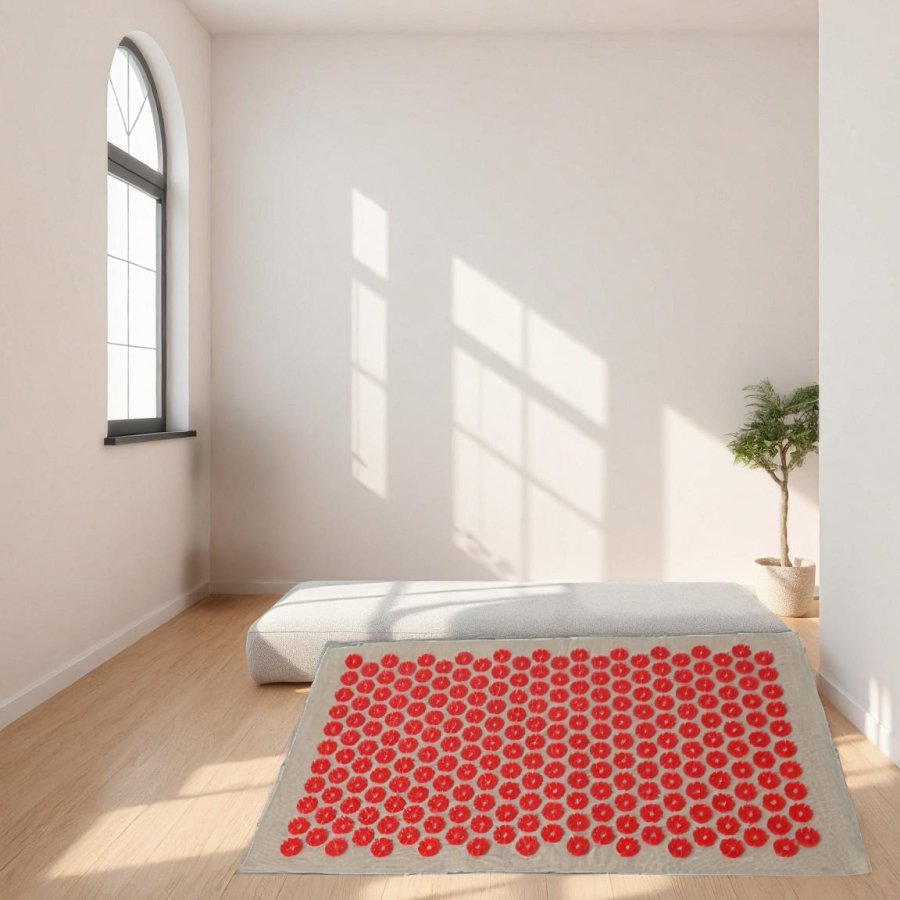 Die Kuznetsov-Matte ist einfach, aber effektiv: Leinenbasis mit ABS-Kunststoffscheiben mit Spitzen.