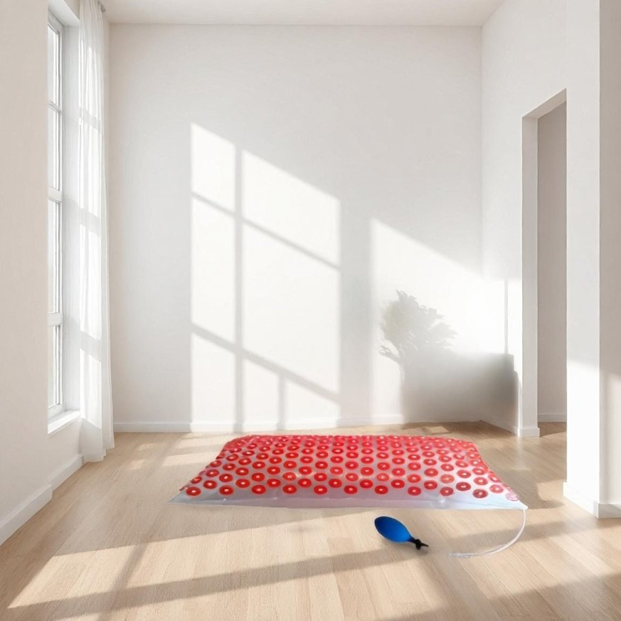 The D8 Iplikator is a large hygienic inflatable acupressure mat made of transparent PVC film. With a pump, the firmness can be adjusted to suit individual needs, making it ideal for relieving pain and improving overall health.